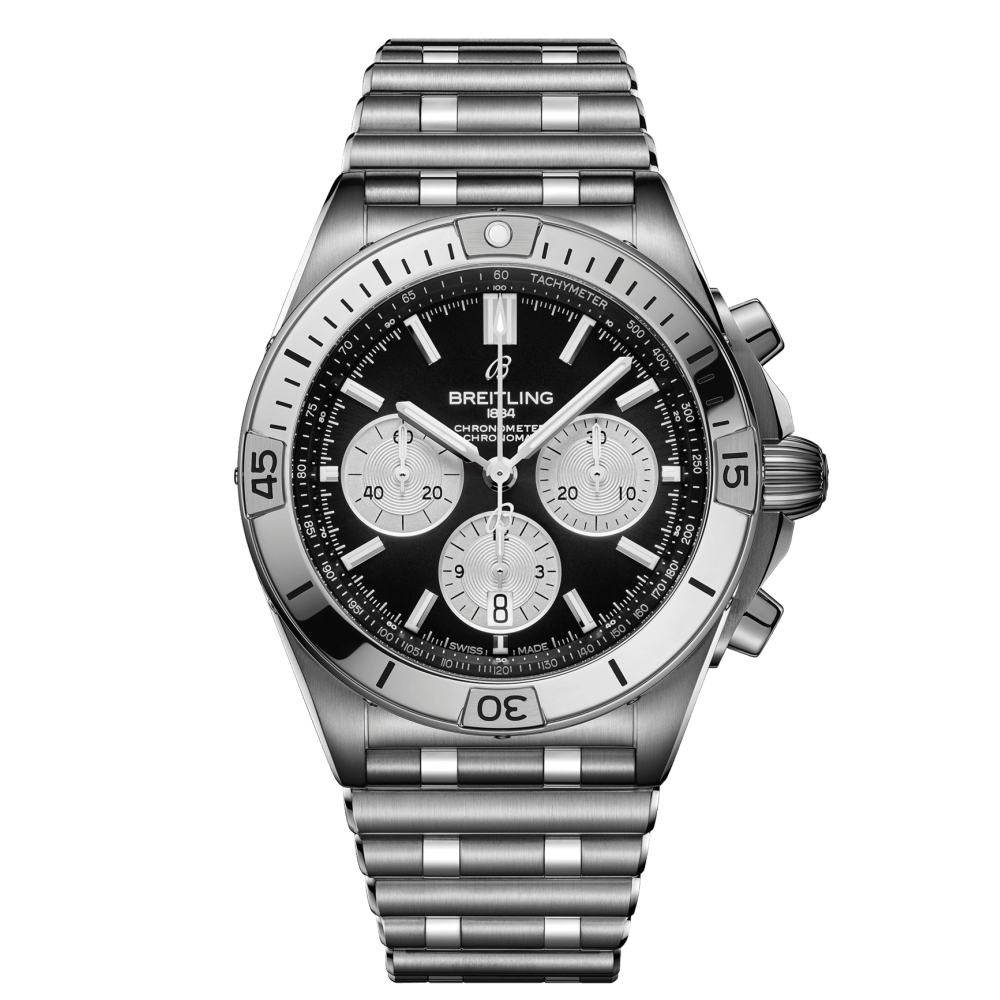 Breitling Chronomat B01 42 Japan Edition AB0134101B2A1 - men's watch produced by Breitling. It has Japanese automatic movement and Breitling Caliber 01 calibre. Stainless steel case of round shape. Case dimensions are 42 mm. in diameter and 15.1 mm. in thickness. The dial of this Breitling watch is black. Display type: analog. This timepiece has sapphire, antireflection coating glass. Stainless steel band, band color: silver. 200 m. water resistance. The watch is from Chronomat collection. The following features are equipped: date, chronometer, glowing hands, glowing markers, chronograph, screw-down crown.