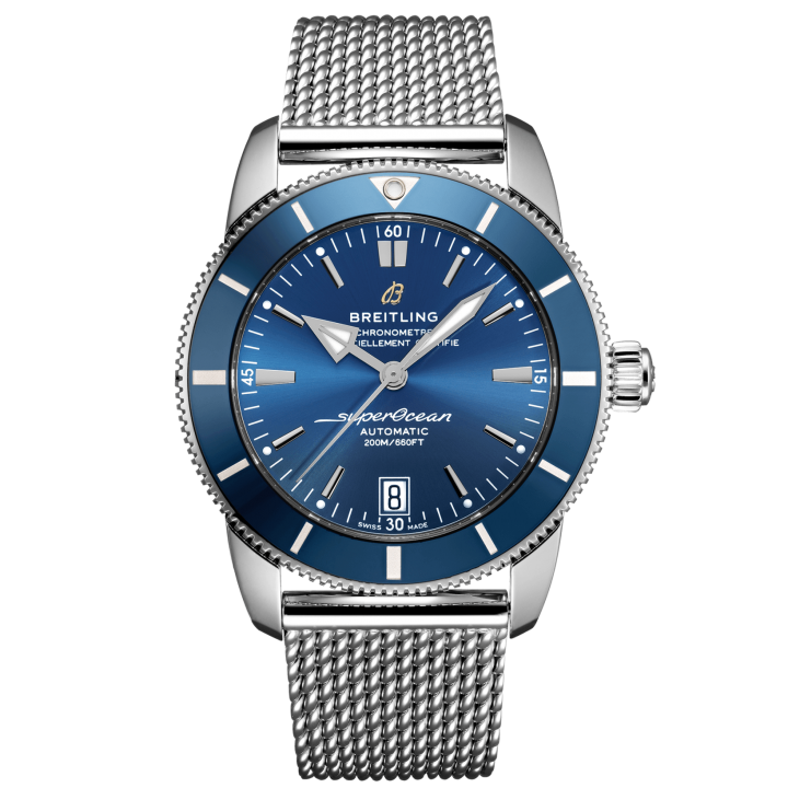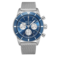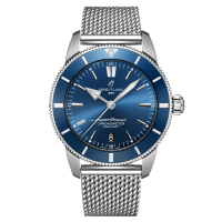 Breitling Superocean Heritage B20 Automatic 42 AB2010161C1A1 - men's watch produced by Breitling. It has Japanese automatic movement and Breitling Caliber 20 calibre. Stainless steel, ceramic case of round shape. Case dimensions are 42 mm. in diameter and 14.3 mm. in thickness. The dial of this Breitling watch is blue. Display type: analog. This timepiece has sapphire, antireflection coating glass. Stainless steel band, band color: silver. 200 m. water resistance. The watch is from Superocean Heritage collection. The following features are equipped: chronometer, glowing hands, glowing markers, date, screw-down crown.