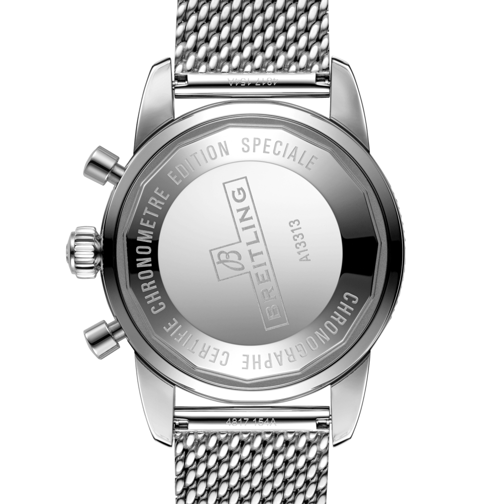 Breitling Superocean Heritage Chronograph 44 A13313121B1A1 - men's watch manufactured by Breitling. It is equipped with Japanese automatic movement and Breitling Caliber 13 calibre. Stainless steel, ceramic case of round shape. Case dimensions are 44 mm. in diameter and 15.6 mm. in thickness. The dial of this Breitling watch is black. Display type: analog. This timepiece has sapphire, antireflection coating glass. Stainless steel band, band color: silver. 200 m. water resistance. The watch is from Superocean Heritage collection. The following features are equipped: chronometer, glowing hands, glowing markers, date, screw-down crown, chronograph, day.
