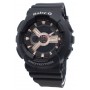 CASIO BABY-G BA-110RG-1AJF - ladies watch manufactured by Casio. It has Japanese quartz movement and 5338 calibre. Polymer case of round shape. Case dimensions are 43.4 mm. in diameter and 15.8 mm. in thickness. The dial of this Casio watch is lcd, black, gold. Display type: analog-digital. This timepiece has mineral glass. Polymer band, band color: black. 100 m. water resistance. The watch is from Baby-G collection. The following features are equipped: date, day, month, glowing hands, world time, chronograph, countdown timer, alarm, perpetual calendar, backlight.