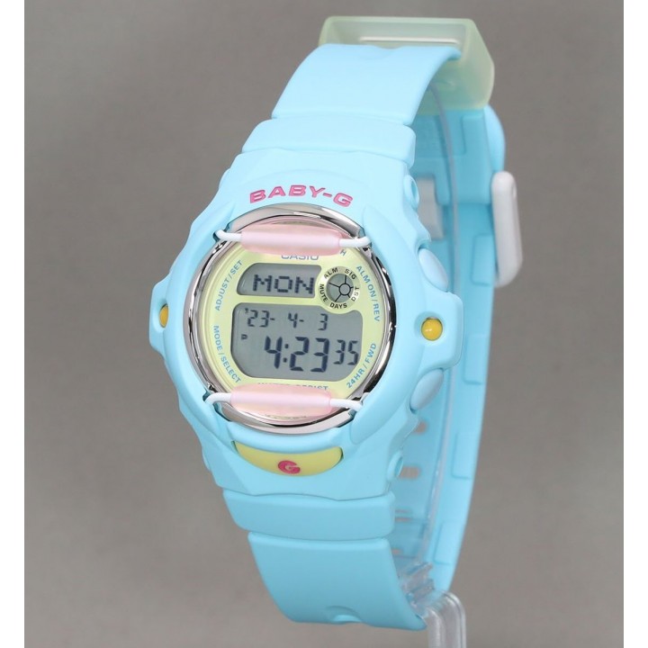 Casio Baby-G Basic BG-169PB-2JF - ladies watch manufactured by Casio. It has Japanese quartz movement and 3531 calibre. Resin, stainless steel case of round shape. Case dimensions are 42.6 mm. in diameter and 16.4 mm. in thickness. The dial of this Casio watch is lcd. Display type: digital. This timepiece has mineral glass. Resin band, band color: blue. 200 m. water resistance. The watch is from Baby-G collection. The following features are equipped: world time, countdown timer, backlight, perpetual calendar, chronograph, alarm, date, day, month.