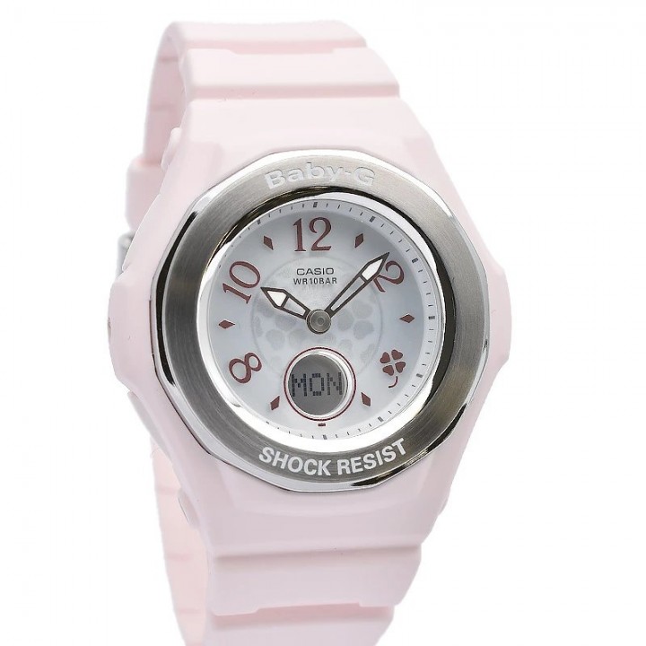 Casio Baby-G BGA-1050CD-4BJF - ladies watch produced by Casio. It has Japanese solar quartz movement and 5133 calibre. Polymer, stainless steel case of round shape. Case dimensions are 38.9 mm. in diameter and 13.1 mm. in thickness. The dial of this Casio watch is gray, lcd. Display type: analog-digital. This timepiece has mineral glass. Polymer band, band color: pink. 100 m. water resistance. The watch is from Baby-G collection. The following features are equipped: radio controlled, glowing hands, world time, chronograph, countdown timer, alarm, power reserve indicator, perpetual calendar, backlight, date, day, month.