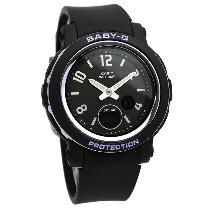 Casio Baby-G BGA-290DR-1AJF - ladies watch manufactured by Casio. It is equipped with Japanese quartz movement and 5670 calibre. Polymer case of round shape. Case dimensions are 41.5 mm. in diameter and 10.1 mm. in thickness. The dial of this Casio watch is lcd, black. Display type: analog-digital. This timepiece has mineral glass. Polymer band, band color: black. 100 m. water resistance. The watch is from Baby-G collection. The following features are equipped: glowing hands, world time, countdown timer, backlight, perpetual calendar, chronograph, alarm, date, day, month.