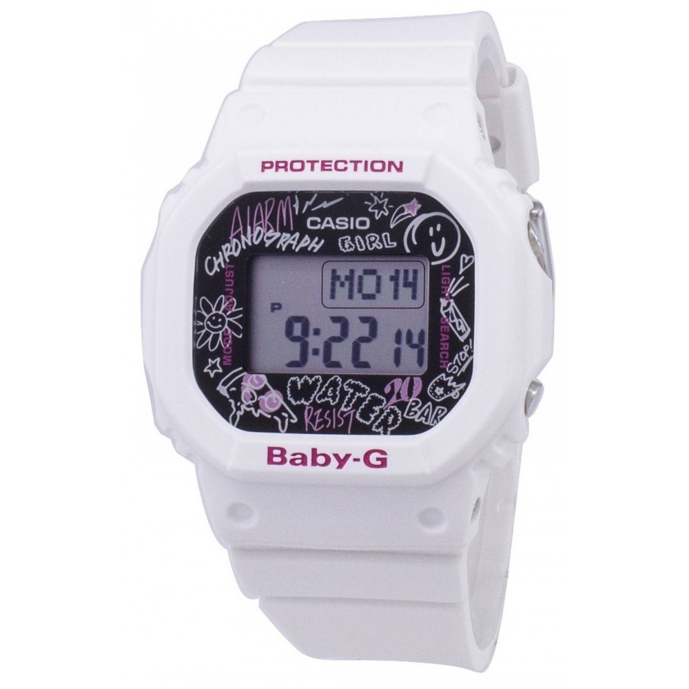 CASIO BABY-G BGD-560SK-7JF - ladies watch made by Casio. It has Japanese quartz movement and 3290 calibre. Polymer case of rectangle shape. Case dimensions are 40 mm. in diameter and 12.5 mm. in thickness. The dial of this Casio watch is lcd. Display type: digital. This timepiece has mineral glass. Polymer band, band color: white. 200 m. water resistance. The watch is from Baby-G collection. The following features are equipped: day, date, world time, chronograph, countdown timer, alarm, perpetual calendar, backlight.