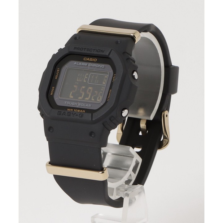 Casio Baby-G Casio Watch 50th Anniversary Model BGD-S565ZE-1JR - ladies watch manufactured by Casio. It has Japanese solar quartz movement and 3563 calibre. Resin, resin (biomass) case of rectangle shape. Case dimensions are 37.9 mm. in diameter and 11.3 mm. in thickness. The dial of this Casio watch is lcd. Display type: digital. This timepiece has mineral glass. Resin (biomass plastic) band, band color: black. 100 m. water resistance. The watch is from Baby-G collection. The following features are equipped: world time, countdown timer, backlight, perpetual calendar, date, day, month, chronograph, alarm, power reserve indicator.