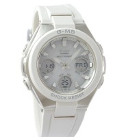 CASIO BABY-G G-MS MSG-W100-7A3JF - ladies watch made by Casio. It is equipped with Japanese solar quartz movement and 5549 calibre. Polymer, stainless steel case of round shape. Case dimensions are 41 mm. in diameter and 13.1 mm. in thickness. The dial of this Casio watch is pink, lcd. Display type: analog-digital. This timepiece has mineral glass. Polymer band, band color: white. 100 m. water resistance. The watch is from Baby-G collection. The following features are equipped: radio controlled, world time, chronograph, countdown timer, power reserve indicator, alarm, perpetual calendar, backlight, date, day, month.