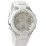 CASIO BABY-G MSG-W100-7A2JF - ladies watch manufactured by Casio. It has Japanese solar quartz movement and 5549 calibre. Polymer, stainless steel case of round shape. Case dimensions are 41 mm. in diameter and 13.1 mm. in thickness. The dial of this Casio watch is gray, lcd. Display type: analog-digital. This timepiece has mineral glass. Polymer band, band color: white. 100 m. water resistance. The watch is from Baby-G collection. The following features are equipped: radio controlled, world time, chronograph, countdown timer, alarm, power reserve indicator, perpetual calendar, backlight, date, day, month.