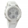CASIO BABY-G MSG-W100-7AJF - ladies watch manufactured by Casio. It has Japanese solar quartz movement and 5549 calibre. Polymer, stainless steel case of round shape. Case dimensions are 41 mm. in diameter and 13.1 mm. in thickness. The dial of this Casio watch is gray, lcd. Display type: analog-digital. This timepiece has mineral glass. Polymer band, band color: white. 100 m. water resistance. The watch is from Baby-G collection. The following features are equipped: radio controlled, backlight, world time, chronograph, countdown timer, alarm, power reserve indicator, perpetual calendar, date, day, month.