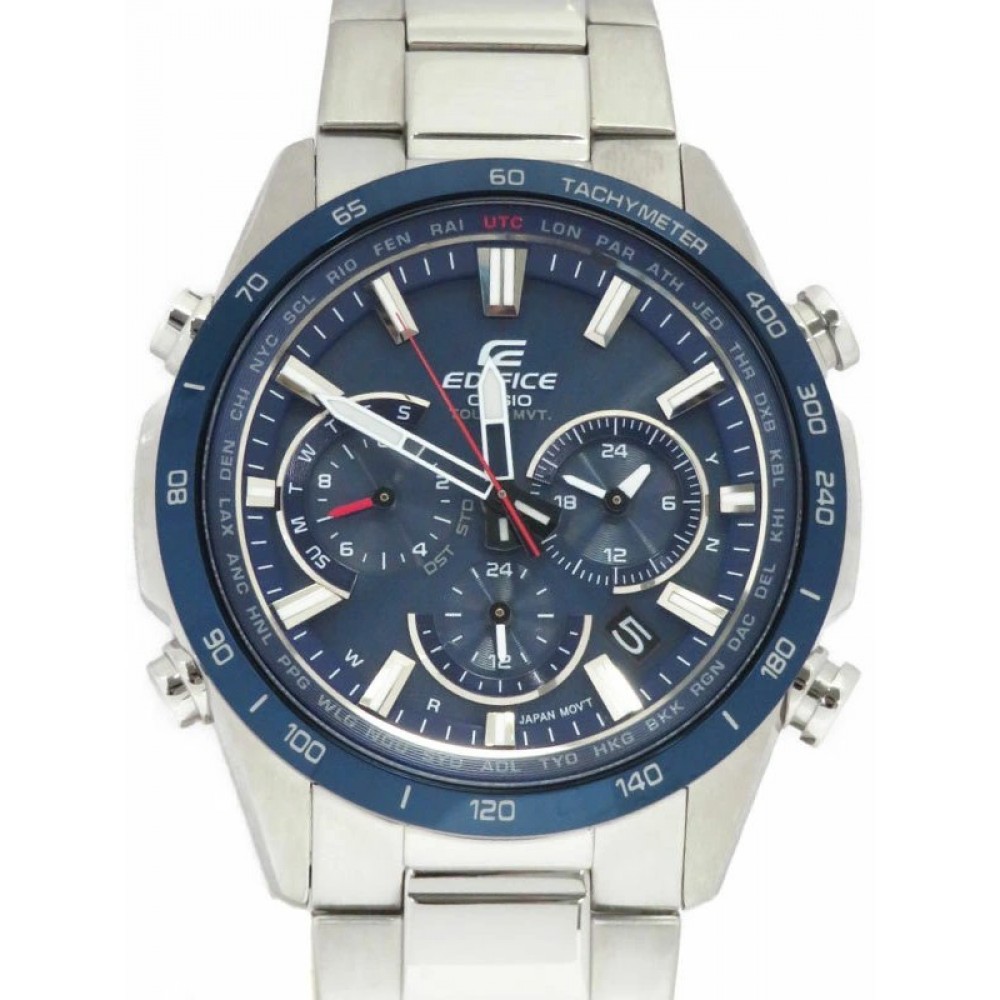 CASIO EDIFICE EQW-T650DB-2AJF - men's watch produced by Casio. It has Japanese solar quartz movement and 5178 calibre. Stainless steel case of round shape. Case dimensions are 43 mm. in diameter and 10.6 mm. in thickness. The dial of this Casio watch is blue. Display type: analog. This timepiece has sapphire, antireflection coating glass. Stainless steel band, band color: silver. 100 m. water resistance. The watch is from Edifice collection. The following features are equipped: radio controlled, world time, chronograph, perpetual calendar, day, date.