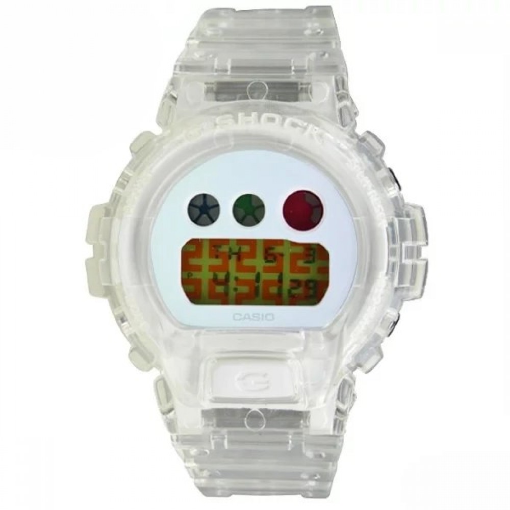 Casio G-Shock 25th Anniversary Model DW-6900SP-7JR - men's watch made by Casio. It has Japanese quartz movement and 3230 calibre. Polymer case of round shape. Case dimensions are 50 mm. in diameter and 16.3 mm. in thickness. The dial of this Casio watch is lcd. Display type: digital. This timepiece has mineral glass. Polymer band, band color: gray. 200 m. water resistance. The watch is from G-Shock collection. The following features are equipped: chronograph, countdown timer, alarm, perpetual calendar, backlight, date, day, month.