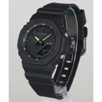 Casio G-Shock Analog-Digital Women GMA-P2100PC-1AJF - ladies watch produced by Casio. It is equipped with Japanese quartz movement and 5730 calibre. Resin, resin (biomass) case of round shape. Case dimensions are 40.2 mm. in diameter and 11.2 mm. in thickness. The dial of this Casio watch is light purple. Display type: analog-digital. This timepiece has mineral glass. Resin (biomass plastic) band, band color: black. 200 m. water resistance. The watch is from G-Shock collection. The following features are equipped: glowing hands, world time, countdown timer, backlight, perpetual calendar, chronograph, alarm, date, day, month.