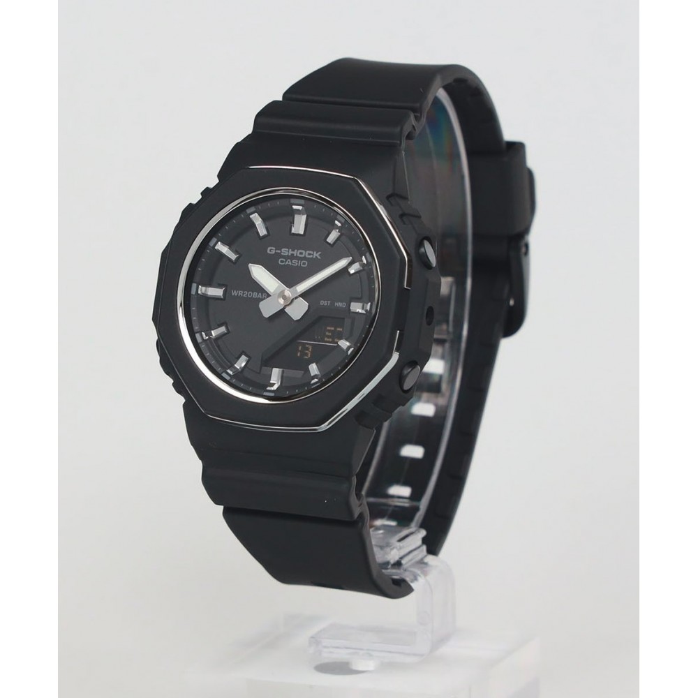 Casio G-Shock Analog-Digital Women GMA-P2110-1AJF - ladies watch made by Casio. It has Japanese quartz movement and 5730 calibre. Resin, resin (biomass) case of round shape. Case dimensions are 40.5 mm. in diameter and 11.3 mm. in thickness. The dial of this Casio watch is lcd, black. Display type: analog-digital. This timepiece has mineral glass. Resin (biomass plastic) band, band color: black. 200 m. water resistance. The watch is from G-Shock collection. The following features are equipped: glowing hands, world time, countdown timer, backlight, perpetual calendar, chronograph, alarm, date, day, month.