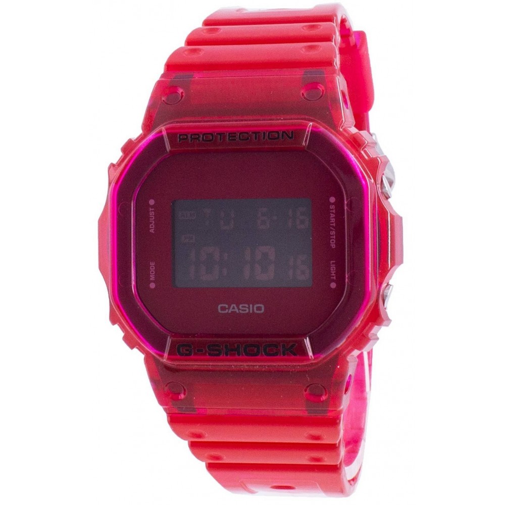 Casio G-Shock Color Skeleton Series DW-5600SB-4JF - men's watch made by Casio. It has Japanese quartz movement and 3229 calibre. Polymer case of polygon shape. Case dimensions are 42.8 mm. in diameter and 13.4 mm. in thickness. The dial of this Casio watch is lcd, red. Display type: digital. This timepiece has mineral glass. Polymer band, band color: red. 200 m. water resistance. The watch is from G-Shock collection. The following features are equipped: chronograph, countdown timer, alarm, perpetual calendar, backlight, date, day, month.