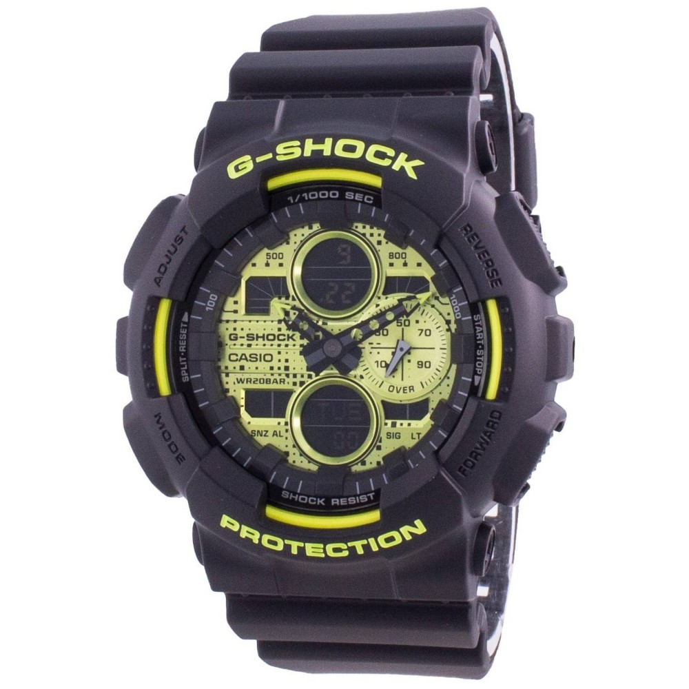 Casio G-Shock Digital Camo Face Series GA-140DC-1AJF - men's watch made by Casio. It has Japanese quartz movement and 5612 calibre. Polymer case of round shape. Case dimensions are 51.2 mm. in diameter and 16.9 mm. in thickness. The dial of this Casio watch is lcd, green. Display type: analog-digital. This timepiece has mineral glass. Polymer band, band color: black. 200 m. water resistance. The watch is from G-Shock collection. The following features are equipped: antimagnetic, world time, chronograph, countdown timer, alarm, perpetual calendar, backlight, day, date, month.