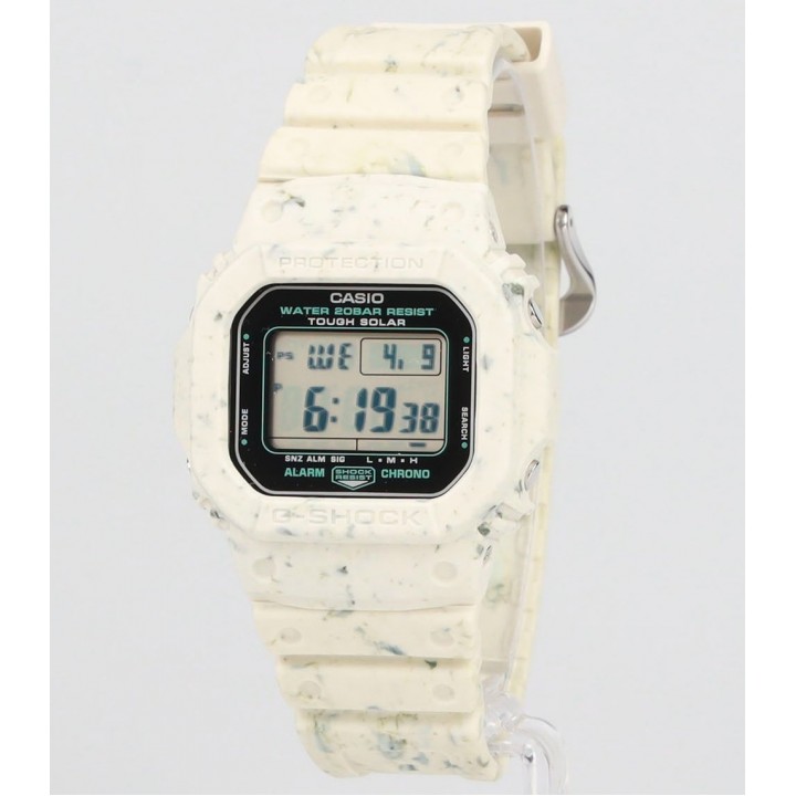 Casio G-Shock Digital G-5600BG-5JR - men's watch manufactured by Casio. It is equipped with Japanese solar quartz movement and 3496 calibre. Resin case of rectangle shape. Case dimensions are 43.2 mm. in diameter and 12.7 mm. in thickness. The dial of this Casio watch is lcd. Display type: digital. This timepiece has mineral glass. Resin band, band color: beige. 200 m. water resistance. The watch is from G-Shock collection. The following features are equipped: world time, countdown timer, backlight, perpetual calendar, date, day, month, chronograph, alarm, power reserve indicator.