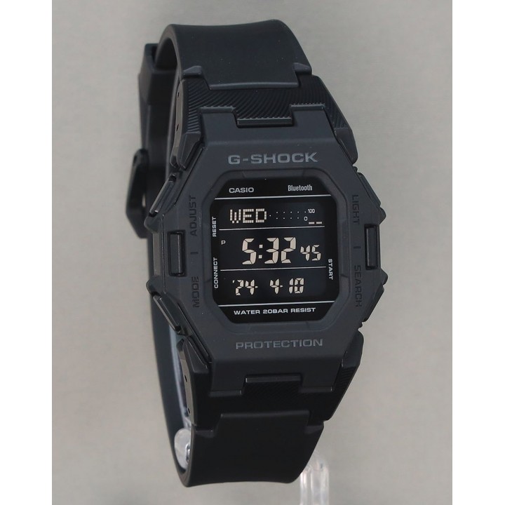 Casio G-Shock Digital GD-B500-1JF - men's watch made by Casio. It is equipped with Japanese quartz movement and 3552 calibre. Resin case of rectangle shape. Case dimensions are 41.5 mm. in diameter and 11 mm. in thickness. The dial of this Casio watch is lcd. Display type: digital. This timepiece has mineral glass. Resin band, band color: black. 200 m. water resistance. The watch is from G-Shock collection. The following features are equipped: bluetooth, step count, world time, dual time, countdown timer, backlight, perpetual calendar, chronograph, alarm, date, day, month.