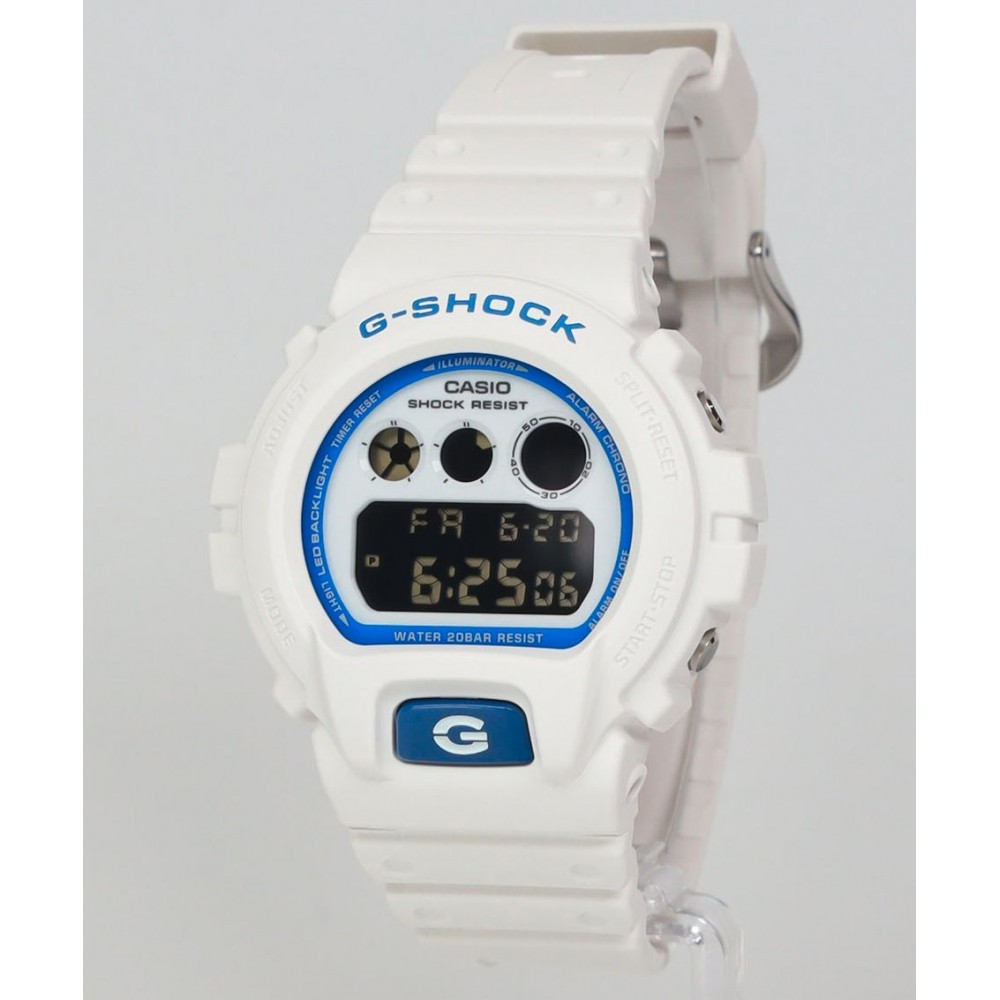 Casio G-Shock Digital HIDDEN GLOW SERIES DW-6900HDS-7A1JF - men's watch made by Casio. It has Japanese quartz movement and 3529 calibre. Resin case of round shape. Case dimensions are 50 mm. in diameter and 18.7 mm. in thickness. The dial of this Casio watch is lcd. Display type: digital. This timepiece has mineral glass. Resin band, band color: white. 200 m. water resistance. The watch is from G-Shock collection. The following features are equipped: chronograph, alarm, backlight, perpetual calendar, countdown timer, date, day, month.