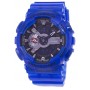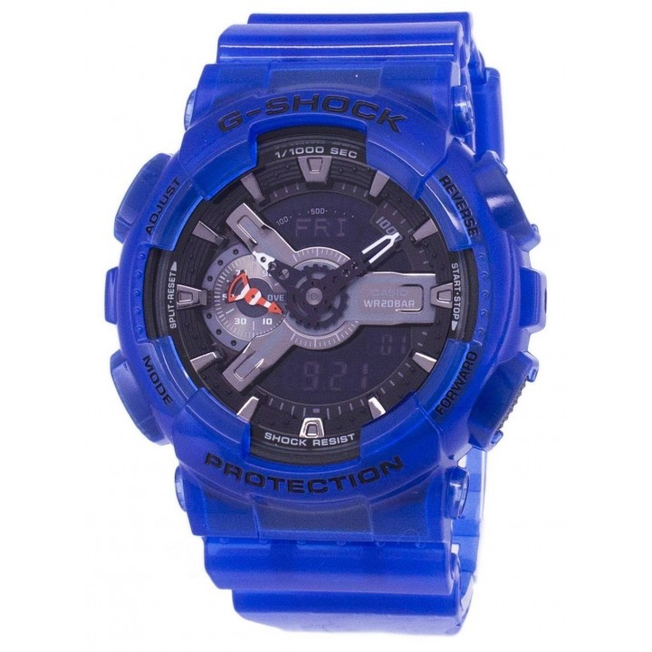 CASIO G-SHOCK GA-110CR-2AJF - men's watch manufactured by Casio. It has Japanese quartz movement and 5146 calibre. Polymer case of round shape. Case dimensions are 51.2 mm. in diameter and 16.9 mm. in thickness. The dial of this Casio watch is black, lcd. Display type: analog-digital. This timepiece has mineral glass. Polymer band, band color: blue. 200 m. water resistance. The watch is from G-Shock collection. The following features are equipped: antimagnetic, world time, chronograph, countdown timer, alarm, perpetual calendar, backlight, date, day, month.