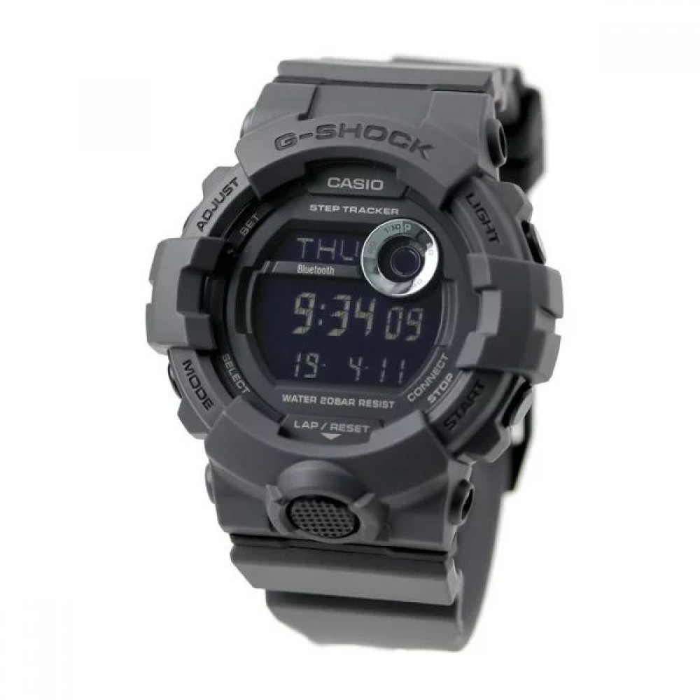 Casio G-Shock GBD-800UC-8JF - men's watch produced by Casio. It is equipped with Japanese quartz movement and 3464 calibre. Polymer case of round shape. Case dimensions are 48.6 mm. in diameter and 15.5 mm. in thickness. The dial of this Casio watch is lcd. Display type: digital. This timepiece has mineral glass. Polymer band, band color: gray. 200 m. water resistance. The watch is from G-Shock collection. The following features are equipped: bluetooth, dual time, chronograph, countdown timer, alarm, perpetual calendar, backlight, date, day, month.