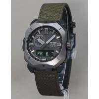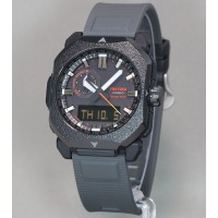 Casio Protrek Climber Line Casio Watch 50th Anniversary Model PRW-6900ZE-1JR - men's watch produced by Casio. It is equipped with Japanese solar quartz movement and 5673 calibre. Resin (biomass), stainless steel, ip coating case of round shape. Case dimensions are 44.8 mm. in diameter and 14.7 mm. in thickness. The dial of this Casio watch is lcd, black. Display type: analog-digital. This timepiece has sapphire, antireflection coating glass. Composite band, band color: black. 100 m. water resistance. The watch is from Pro Trek collection. The following features are equipped: cold resistance, radio controlled, compass, altimeter, barometer, thermometer, glowing hands, screw-down crown, world time, countdown timer, backlight, perpetual calendar, power reserve indicator, chronograph, alarm, date, day, month.