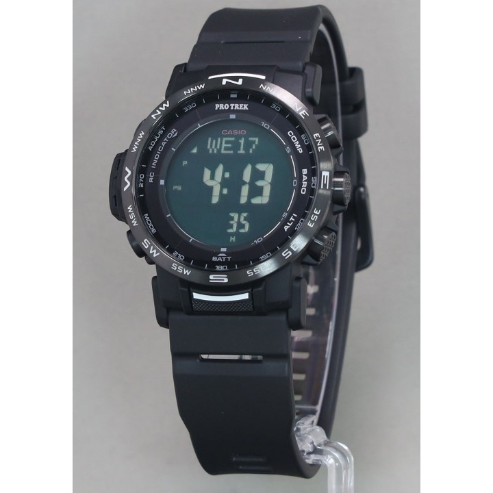 Casio Protrek Climber Line PRW-35Y-1BJF - men's watch manufactured by Casio. It has Japanese solar quartz movement and 3490 calibre. Resin (biomass), stainless steel, ip coating case of round shape. Case dimensions are 44.6 mm. in diameter and 13 mm. in thickness. The dial of this Casio watch is lcd. Display type: digital. This timepiece has mineral glass. Resin (biomass plastic) band, band color: black. 100 m. water resistance. The watch is from Pro Trek collection. The following features are equipped: radio controlled, altimeter, barometer, compass, thermometer, cold resistance, world time, chronograph, alarm, backlight, power reserve indicator, countdown timer, perpetual calendar, date, day.