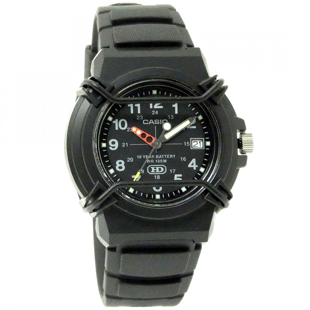 CASIO STANDARD HDA-600B-1BJF - unisex watch made by Casio. It has Japanese quartz movement and 2719 calibre. Polymer case of round shape. Case dimensions are 41.1 mm. in diameter and 13.4 mm. in thickness. The dial of this Casio watch is black. Display type: analog. This timepiece has polymer glass. Polymer band, band color: black. 100 m. water resistance. The watch is from Standard collection. The following features are equipped: date.