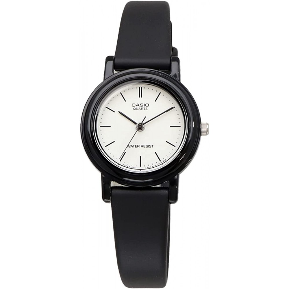 CASIO STANDARD LQ-139BMV-7ELJF - ladies watch made by Casio. It has Japanese quartz movement and 1330 calibre. Polymer case of round shape. Case dimensions are 25.2 mm. in diameter and 7.5 mm. in thickness. The dial of this Casio watch is white. Display type: analog. This timepiece has polymer glass. Polymer band, band color: black. 30 m. water resistance. The watch is from Standard collection.