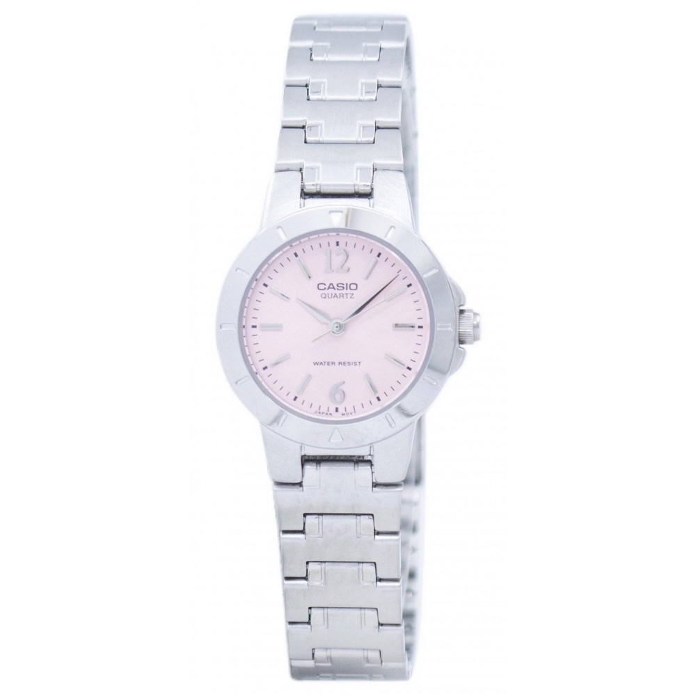 CASIO STANDARD LTP-1177A-4A1JH - ladies watch made by Casio. It has Japanese quartz movement and 1330 calibre. Brass case of round shape. Case dimensions are 25 mm. in diameter and 7.2 mm. in thickness. The dial of this Casio watch is pink. Display type: analog. This timepiece has mineral glass. Stainless steel band, band color: silver. 30 m. water resistance. The watch is from Standard collection.