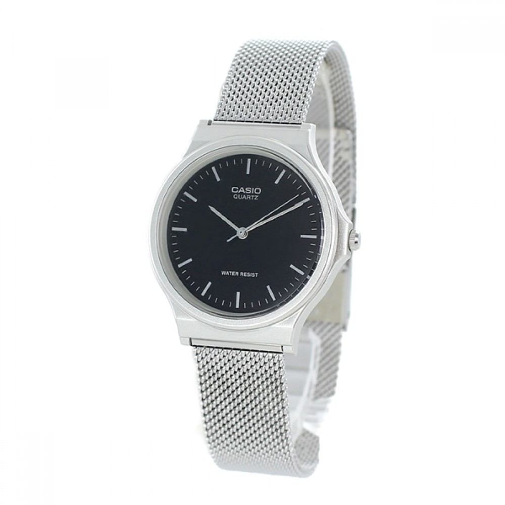 Casio Standard MQ-24M-1EJF - unisex watch made by Casio. It is equipped with Japanese quartz movement and 1330 calibre. Polymer case of round shape. Case dimensions are 34.9 mm. in diameter and 7.8 mm. in thickness. The dial of this Casio watch is black. Display type: analog. This timepiece has polymer glass. Stainless steel band, band color: silver. 30 m. water resistance. The watch is from Standard collection.