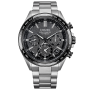 Citizen Attesa ACT Line CC4058-67X - men's watch made by Citizen. It is equipped with Japanese solar quartz movement and F950 calibre. Super titanium, duratect treatment, duratect dlc, sapphire glass case of round shape. Case dimensions are 44.6 mm. in diameter and 15.4 mm. in thickness. The dial of this Citizen watch is anthracite. Display type: analog. This timepiece has sapphire, clarity coating glass. Super titanium band, band color: silver. 100 m. water resistance. The watch is from Attesa collection. The following features are equipped: gps, antimagnetic, glowing hands, glowing markers, power reserve indicator, perpetual calendar, date, day, chronograph, world time, dual time, alarm.