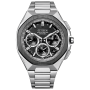 Citizen Attesa ACT Line CC4104-53E - men's watch manufactured by Citizen. It is equipped with Japanese solar quartz movement and F950 calibre. Super titanium, duratect treatment, ceramic case of round shape. Case dimensions are 44 mm. in diameter and 13.7 mm. in thickness. The dial of this Citizen watch is black. Display type: analog. This timepiece has sapphire, clarity coating glass. Super titanium band, band color: silver. 100 m. water resistance. The watch is from Attesa collection. The following features are equipped: gps, antimagnetic, glowing hands, power reserve indicator, perpetual calendar, date, day, chronograph, world time, dual time, alarm.