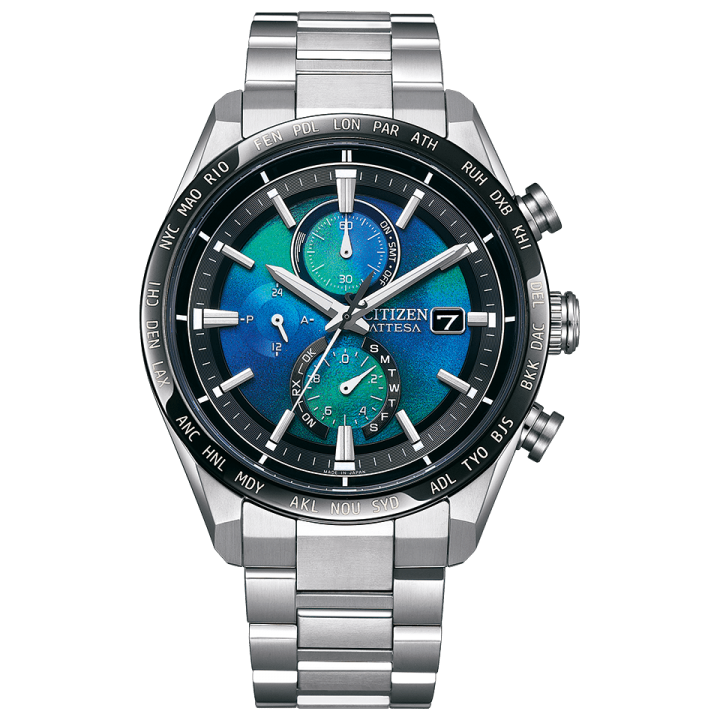Citizen Attesa ACT Line UNITE with BLUE Limited Edition AT8188-64L - men's watch manufactured by Citizen. It has Japanese solar quartz movement and H800 calibre. Super titanium, duratect treatment case of round shape. Case dimensions are 42 mm. in diameter and 10.8 mm. in thickness. The dial of this Citizen watch is blue. Display type: analog. This timepiece has sapphire, clarity coating glass. Super titanium band, band color: silver. 100 m. water resistance. The watch is from Attesa collection. The following features are equipped: radio controlled, antimagnetic, glowing hands, glowing markers, power reserve indicator, chronograph, world time, date, day, perpetual calendar, limited edition.