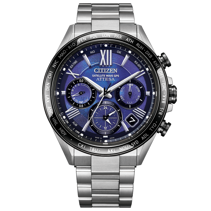 Citizen Attesa Act Line UNITE with BLUE Limited Edition CC4075-50L - men's watch made by Citizen. It is equipped with Japanese solar quartz movement and F950 calibre. Super titanium, duratect treatment, duratect dlc, sapphire glass case of round shape. Case dimensions are 44.6 mm. in diameter and 15.4 mm. in thickness. The dial of this Citizen watch is blue. Display type: analog. This timepiece has sapphire, clarity coating glass. Super titanium band, band color: silver. 100 m. water resistance. The watch is from Attesa collection. The following features are equipped: gps, antimagnetic, glowing hands, glowing markers, power reserve indicator, perpetual calendar, date, day, chronograph, world time, dual time, alarm, limited edition.