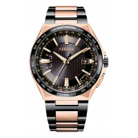 Citizen Attesa CB0215-51E - men's watch manufactured by Citizen. It is equipped with Japanese solar quartz movement and H145 calibre. Titanium, hard coating case of round shape. Case dimensions are 42.5 mm. in diameter and 10.1 mm. in thickness. The dial of this Citizen watch is black. Display type: analog. This timepiece has sapphire, antireflection coating glass. Titanium, hard coating band, band color: black. 100 m. water resistance. The watch is from Attesa collection. The following features are equipped: glowing hands, glowing markers, perpetual calendar, radio controlled, antimagnetic, power reserve indicator, world time, date.