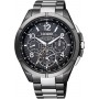CITIZEN ATTESA GPS CC9075-52E - men's watch manufactured by Citizen. It has Japanese solar quartz movement and F900 calibre. Titanium, hard coating case of round shape. Case dimensions are 43.5 mm. in diameter and 13.1 mm. in thickness. The dial of this Citizen watch is black. Display type: analog. This timepiece has sapphire, super clear coating glass. Titanium, hard coating band, band color: silver, black. 100 m. water resistance. The watch is from Attesa collection. The following features are equipped: gps, date, day, chronograph, alarm, dual time, perpetual calendar, world time, antimagnetic, power reserve indicator, glowing hands, glowing markers.