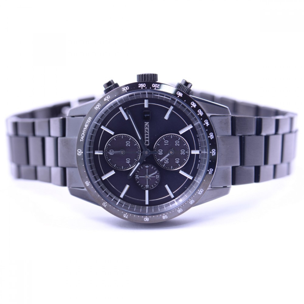 CITIZEN CA0455-53E - men's watch made by Citizen. It has Japanese solar quartz movement and B612 calibre. Stainless steel, hard coating case of round shape. Case dimensions are 39.5 mm. in diameter and 11.9 mm. in thickness. The dial of this Citizen watch is black. Display type: analog. This timepiece has mineral glass. Stainless steel, hard coating band, band color: black. 100 m. water resistance. The watch is from Eco-Drive collection. The following features are equipped: date, chronograph.