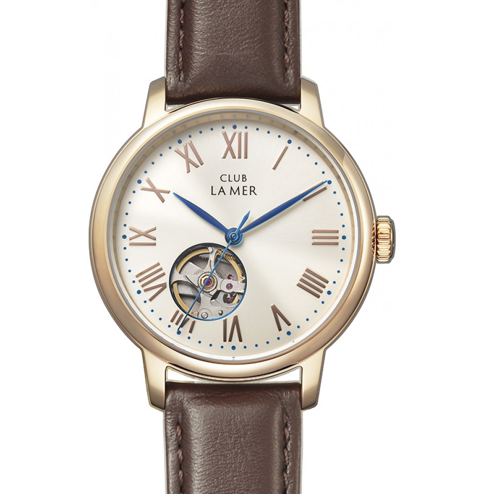 Citizen Club La Mer Open Heart BJ7-026-10 - unisex watch produced by Citizen. It is equipped with Japanese automatic movement and 8229 calibre. Stainless steel, gold plated case of round shape. Case dimensions are 38 mm. in diameter and 11 mm. in thickness. The dial of this Citizen watch is beige. Display type: analog. This timepiece has mineral glass. Leather band, band color: brown. 30 m. water resistance. The watch is from Club La Mer collection.
