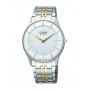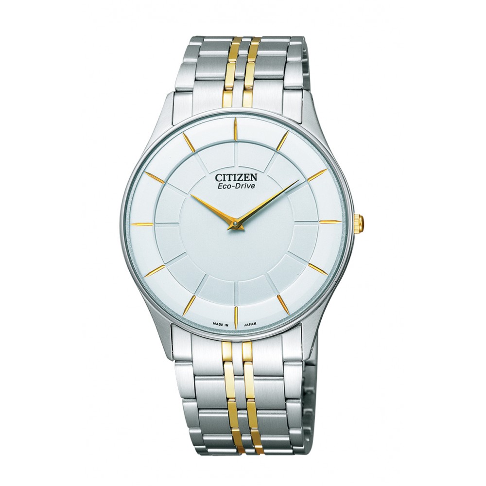 Citizen Collection AR3014-56A - men's watch produced by Citizen. It has Japanese solar quartz movement and G870 calibre. Stainless steel, gold plated case of round shape. Case dimensions are 36.2 mm. in diameter and 4.8 mm. in thickness. The dial of this Citizen watch is white. Display type: analog. This timepiece has sapphire glass. Stainless steel, gold plated band, band color: silver, gold. 30 m. water resistance. The watch is from Citizen Collection collection.