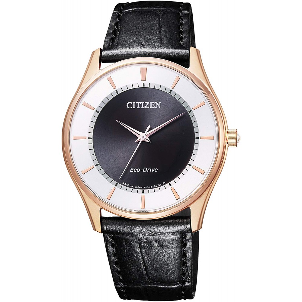 CITIZEN COLLECTION BJ6482-04E - men's watch made by Citizen. It is equipped with Japanese solar quartz movement and E031 calibre. Stainless steel, gold plated case of round shape. Case dimensions are 37.2 mm. in diameter and 7.1 mm. in thickness. The dial of this Citizen watch is silver, black. Display type: analog. This timepiece has sapphire glass. Leather band, band color: black. 50 m. water resistance. The watch is from Citizen Collection collection. The following features are equipped: limited edition, crystal set.