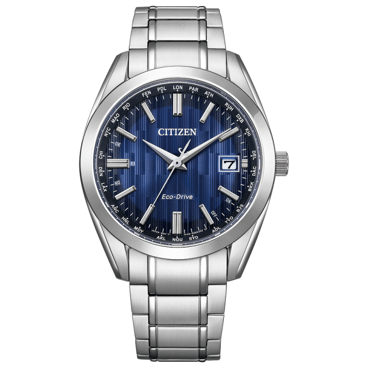 Citizen Collection CB0261-53L - men's watch made by Citizen. It has Japanese solar quartz movement and H145 calibre. Super titanium, duratect treatment case of round shape. Case dimensions are 40 mm. in diameter and 10 mm. in thickness. The dial of this Citizen watch is blue. Display type: analog. This timepiece has sapphire, antireflection coating glass. Super titanium band, band color: silver. 100 m. water resistance. The watch is from Citizen Collection collection. The following features are equipped: antimagnetic, radio controlled, power reserve indicator, perpetual calendar, date, world time.