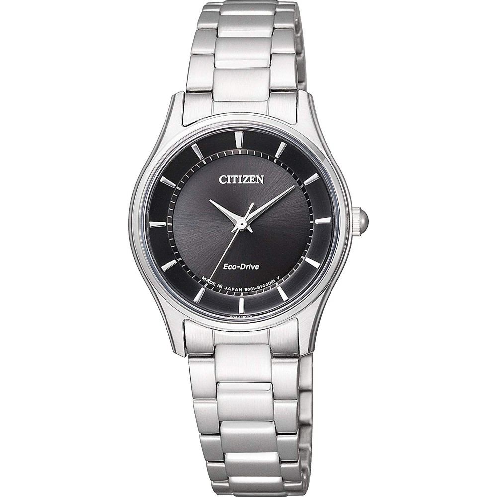 CITIZEN COLLECTION EM0400-51E - ladies watch made by Citizen. It is equipped with Japanese solar quartz movement and E031 calibre. Stainless steel case of round shape. Case dimensions are 27 mm. in diameter and 7.2 mm. in thickness. The dial of this Citizen watch is black. Display type: analog. This timepiece has sapphire glass. Stainless steel band, band color: silver. 50 m. water resistance. The watch is from Citizen Collection collection.