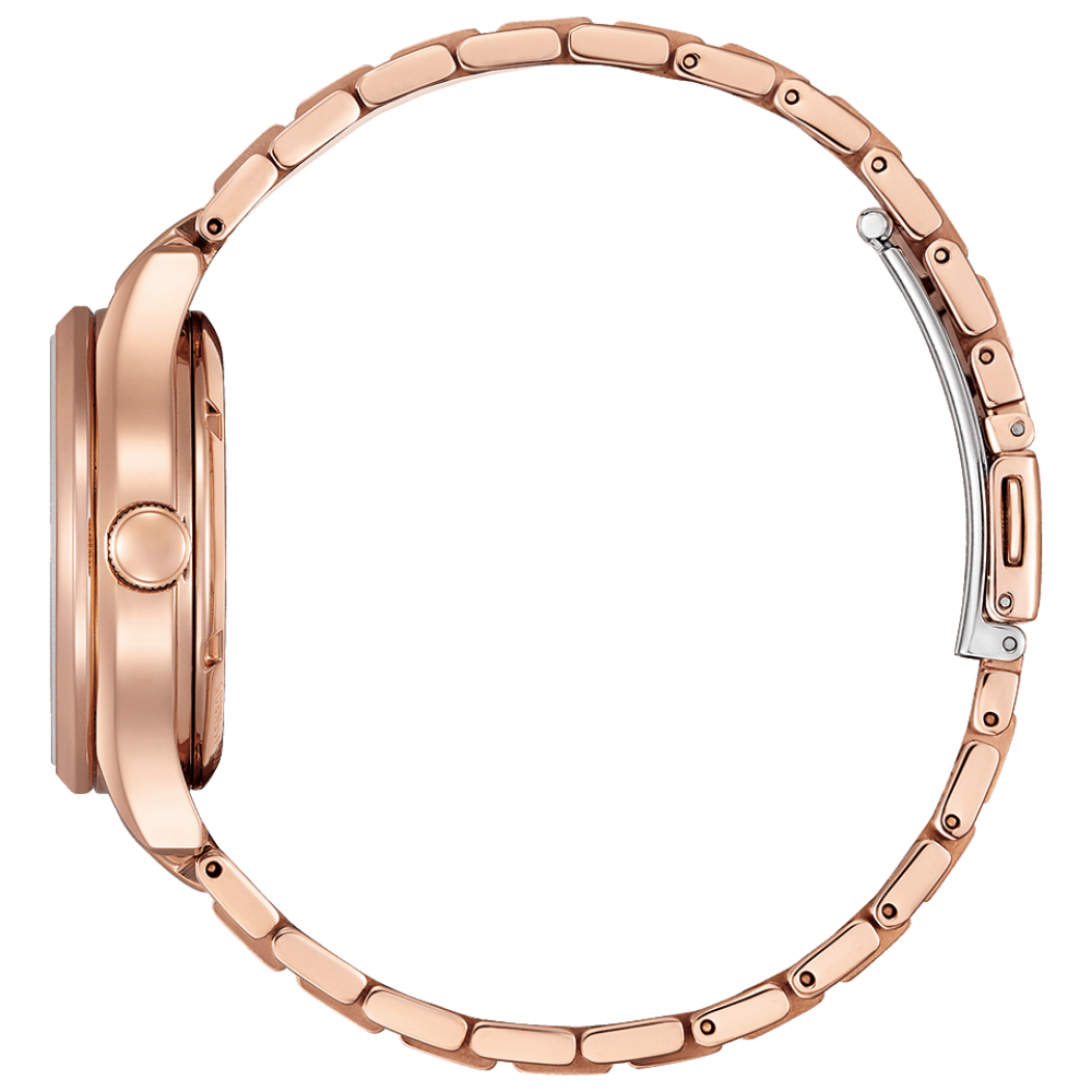 Citizen Collection Limited Edition PC1017-70Y - ladies watch produced by Citizen. It is equipped with Japanese automatic movement and 8229 calibre. Stainless steel, gold plated case of round shape. Case dimensions are 34 mm. in diameter and 11.1 mm. in thickness. The dial of this Citizen watch is mother of pearl, pink. Display type: analog. This timepiece has sapphire glass. Stainless steel, gold plated, synthetic leather (ecopet®) band, band color: gold, light pink. 100 m. water resistance. The watch is from Citizen Collection collection. The following features are equipped: crystal set, glowing hands, limited edition.