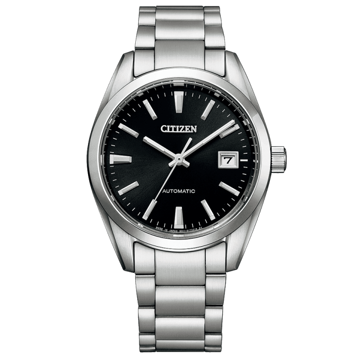 Citizen Collection NB1050-59E - men's watch manufactured by Citizen. It is equipped with Japanese automatic movement and 9011 calibre. Stainless steel, hard coating case of round shape. Case dimensions are 38 mm. in diameter and 10.5 mm. in thickness. The dial of this Citizen watch is black. Display type: analog. This timepiece has sapphire, antireflection coating glass. Stainless steel, hard coating band, band color: silver. 100 m. water resistance. The watch is from Citizen Collection collection. The following features are equipped: glowing hands, glowing markers, date.