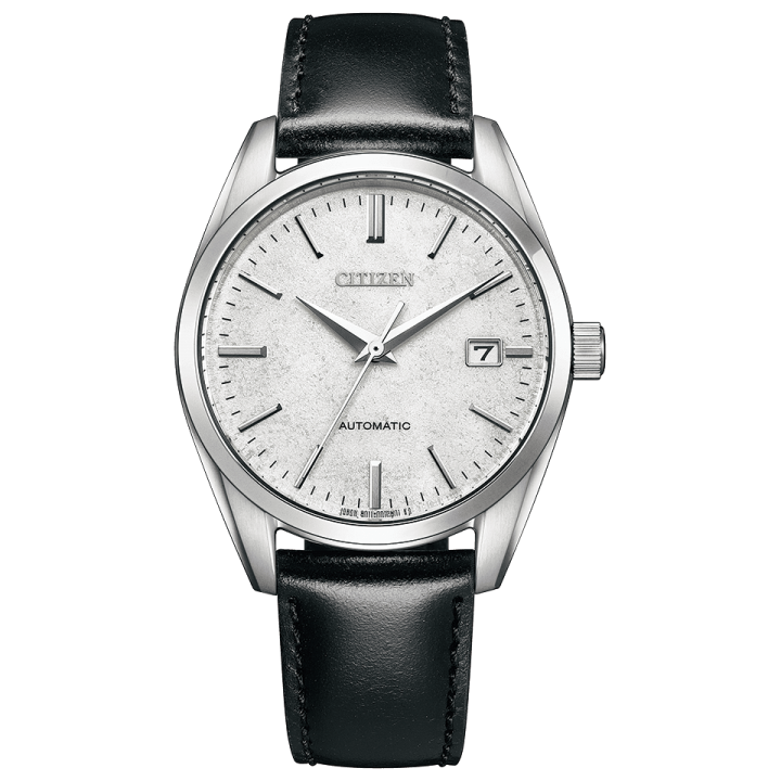 Citizen Collection NB1060-04A - men's watch manufactured by Citizen. It is equipped with Japanese automatic movement and 9011 calibre. Stainless steel, hard coating case of round shape. Case dimensions are 38.2 mm. in diameter and 12 mm. in thickness. The dial of this Citizen watch is silver. Display type: analog. This timepiece has sapphire, antireflection coating glass. Cordovan band, band color: black. 100 m. water resistance. The watch is from Citizen Collection collection. The following features are equipped: date.
