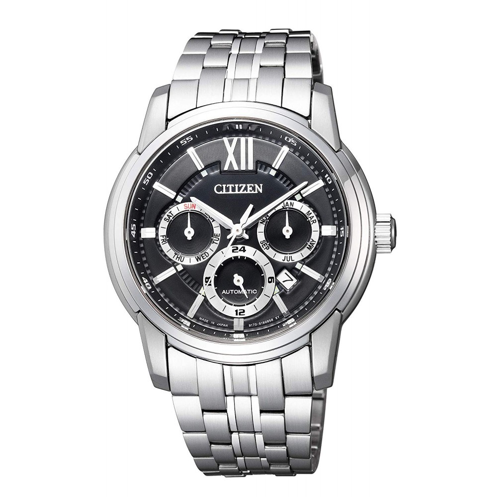CITIZEN COLLECTION NB2000-86E - men's watch made by Citizen. It has Japanese automatic movement and 9170 calibre. Stainless steel case of round shape. Case dimensions are 42 mm. in diameter and 12.5 mm. in thickness. The dial of this Citizen watch is black. Display type: analog. This timepiece has sapphire, antireflection coating glass. Stainless steel band, band color: silver. 100 m. water resistance. The watch is from Citizen Collection collection. The following features are equipped: day, date, month, glowing hands, glowing markers.