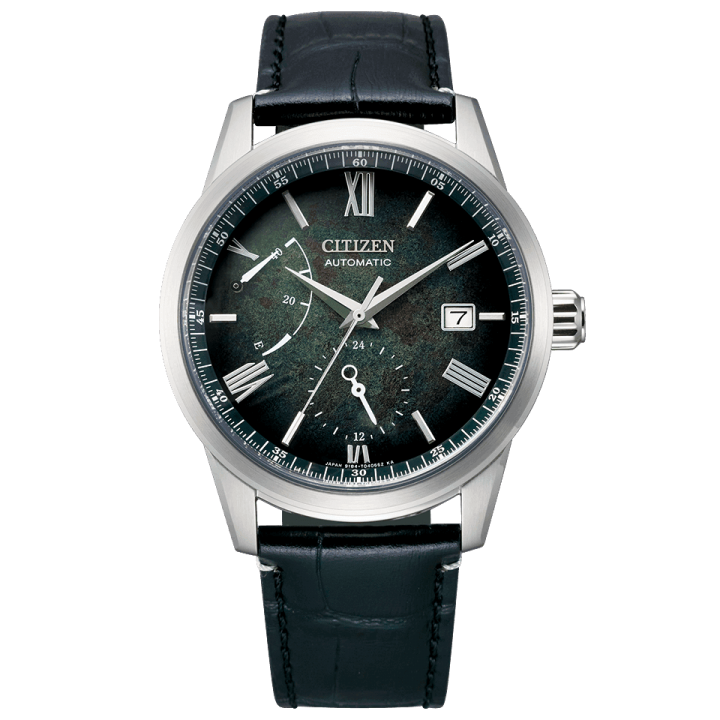 Citizen Collection NB3020-16W - men's watch manufactured by Citizen. It is equipped with Japanese automatic movement and 9184 calibre. Stainless steel, hard coating case of round shape. Case dimensions are 40.5 mm. in diameter and 14.1 mm. in thickness. The dial of this Citizen watch is green. Display type: analog. This timepiece has sapphire, antireflection coating glass. Leather band, band color: black. 100 m. water resistance. The watch is from Citizen Collection collection. The following features are equipped: power reserve indicator, date.