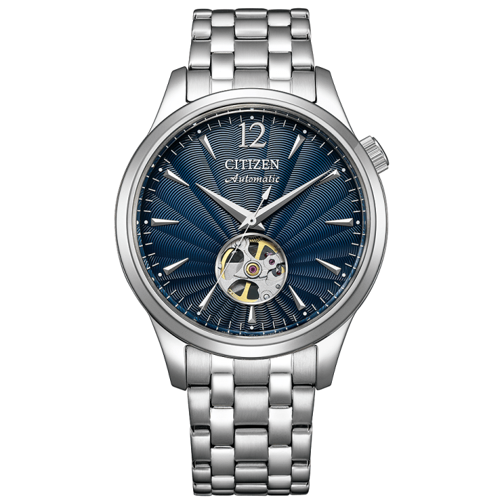 Citizen Collection NH9131-73L - men's watch produced by Citizen. It has Japanese automatic movement and 8229 calibre. Stainless steel case of round shape. Case dimensions are 40 mm. in diameter and 10.7 mm. in thickness. The dial of this Citizen watch is blue. Display type: analog. This timepiece has mineral glass. Stainless steel band, band color: silver. 50 m. water resistance. The watch is from Citizen Collection collection.