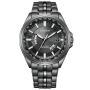 Citizen Collection NIGHT COLOUR EDITION CB0294-54E - men's watch made by Citizen. It is equipped with Japanese solar quartz movement and H145 calibre. Stainless steel, hard coating case of round shape. Case dimensions are 43 mm. in diameter and 9.8 mm. in thickness. The dial of this Citizen watch is black. Display type: analog. This timepiece has sapphire, antireflection coating glass. Stainless steel, hard coating band, band color: black. 100 m. water resistance. The watch is from Citizen Collection collection. The following features are equipped: radio controlled, antimagnetic, glowing hands, glowing markers, power reserve indicator, perpetual calendar, date, world time.