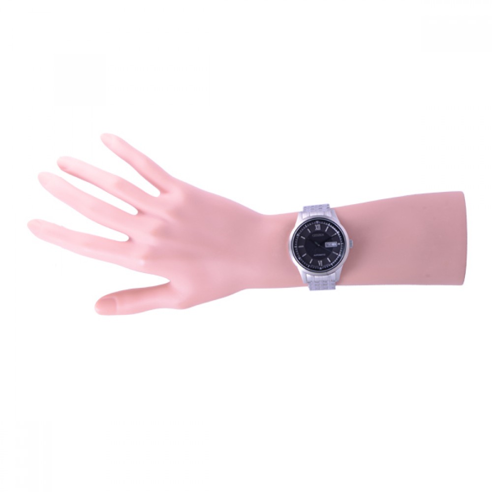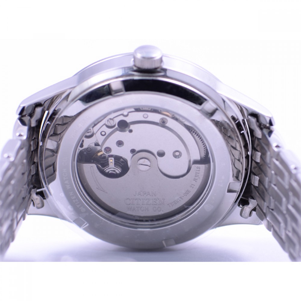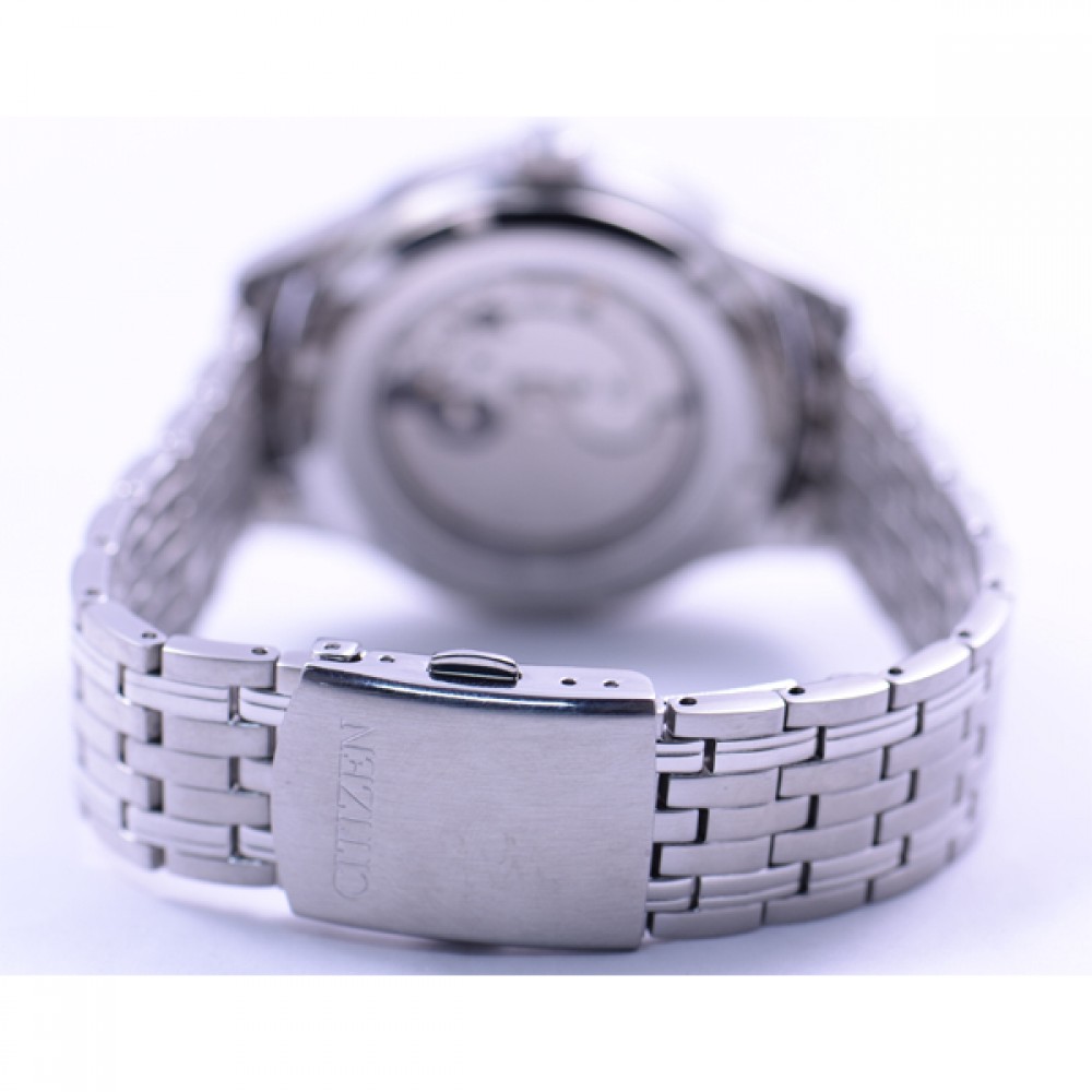 CITIZEN COLLECTION NY4050-54E - men's watch produced by Citizen. It has Japanese automatic movement and 8200 calibre. Stainless steel case of round shape. Case dimensions are 40 mm. in diameter and 10.7 mm. in thickness. The dial of this Citizen watch is black. Display type: analog. This timepiece has sapphire glass. Stainless steel band, band color: silver. 50 m. water resistance. The watch is from Citizen Collection collection. The following features are equipped: date, day.