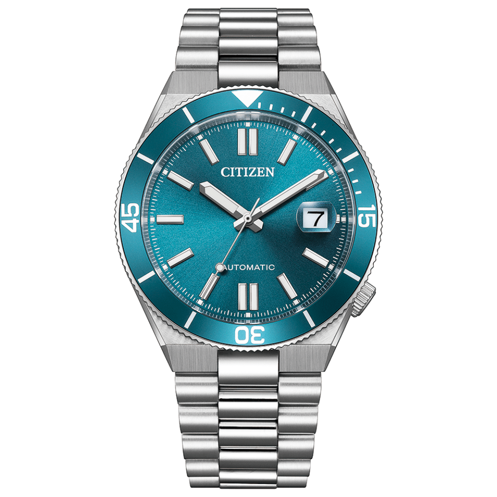 Citizen Collection TSUYOSA NJ0231-56L - men's watch produced by Citizen. It is equipped with Japanese automatic movement and 8210 calibre. Stainless steel case of round shape. Case dimensions are 40 mm. in diameter and 12.5 mm. in thickness. The dial of this Citizen watch is blue. Display type: analog. This timepiece has sapphire glass. Stainless steel band, band color: silver. 100 m. water resistance. The watch is from Citizen Collection collection. The following features are equipped: glowing hands, glowing markers, antimagnetic, date.